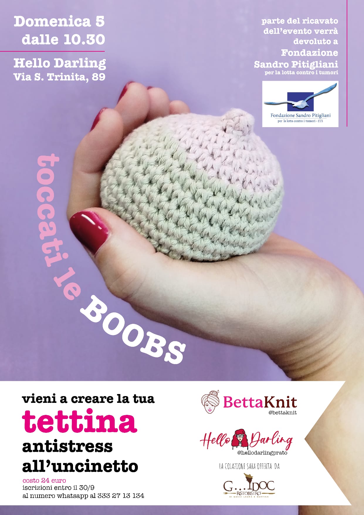 Domenica 5 ottobre dalle 10.30, potrai creare la tua tettina antistress all’uncinetto nel nostro corso mattutino (anche per principianti!)