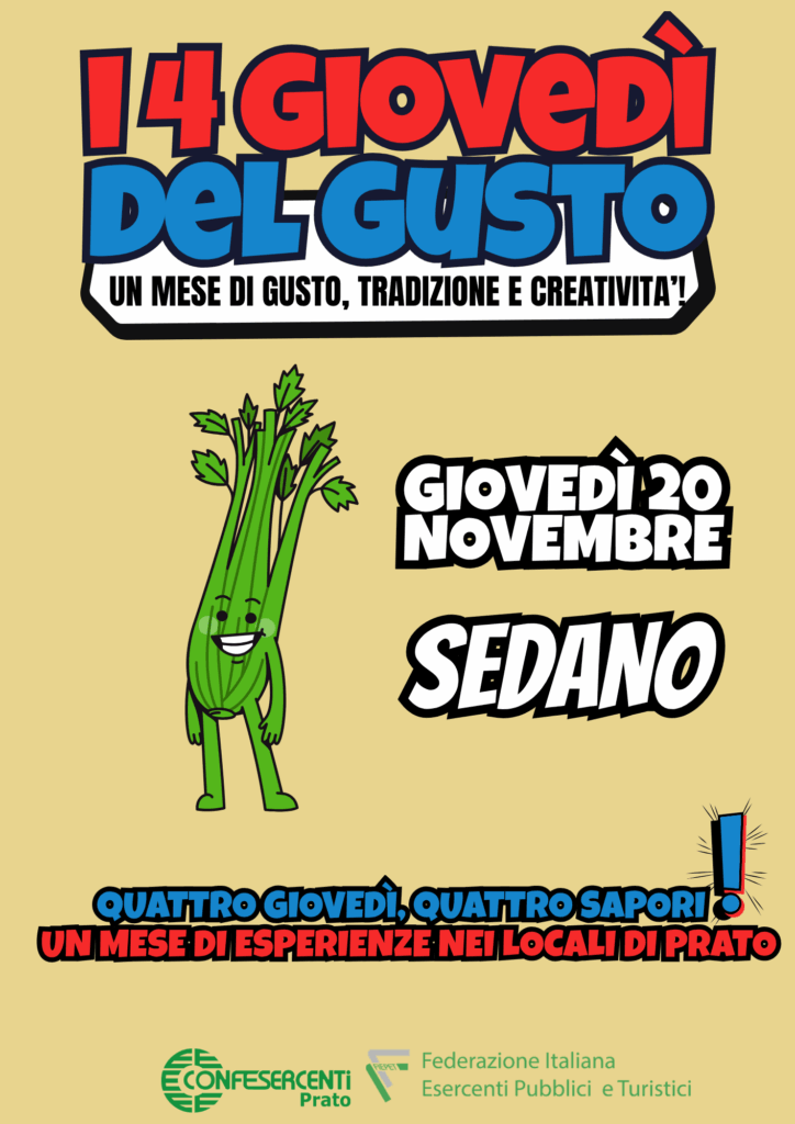 Il protagonista del 20 novembre sarà il sedano: A Prato il sedano è molto più di un semplice ortaggio: è parte della storia gastronomica della città. Il celebre sedano alla pratese, farcito con un gustoso ripieno di carne e aromi, racconta l’ingegno e la tradizione delle cucine di un tempo. Durante questa settimana, i locali reinterpretano questo piatto simbolo e propongono versioni inedite che ne esaltano la freschezza e la versatilità. Un omaggio al gusto sincero della tradizione pratese.