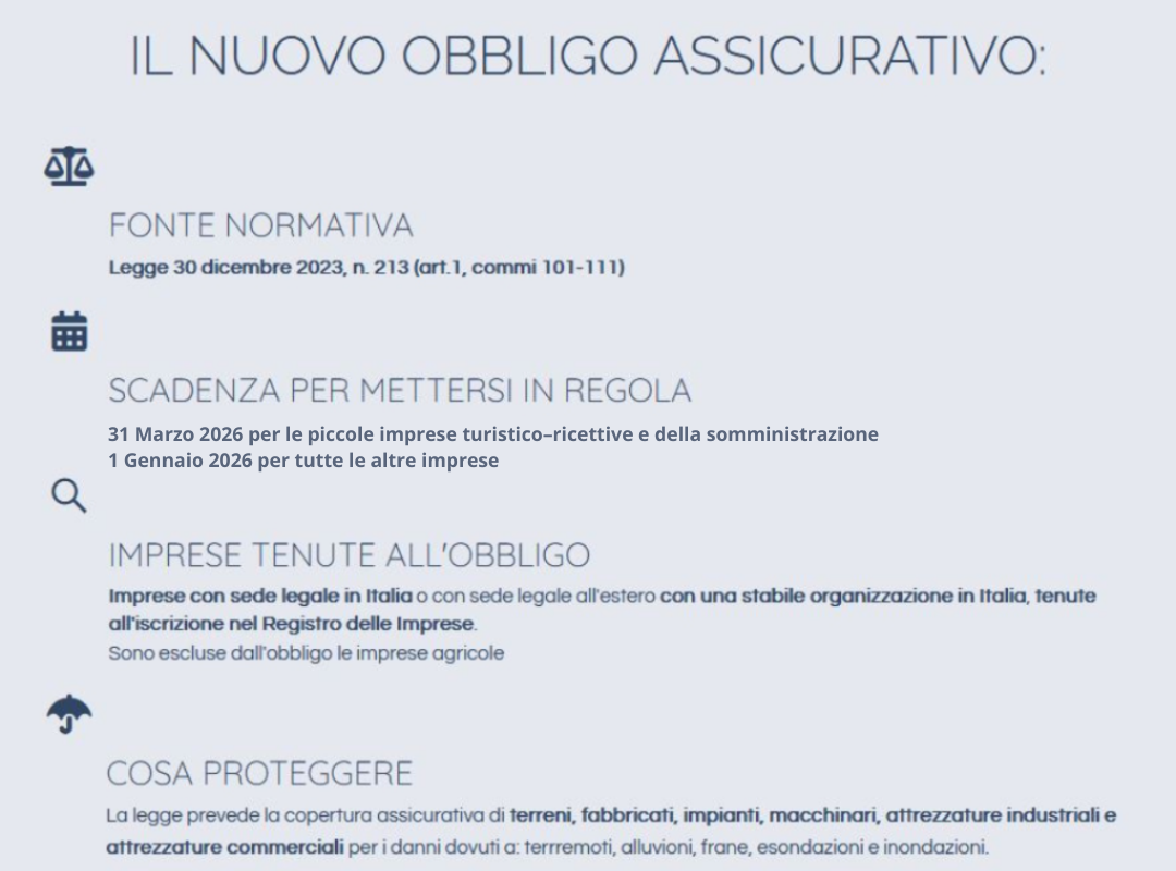 Polizze catastrofali obbligatorie: proroga al 31 Marzo 2026 per le piccole imprese turistico–ricettive e della somministrazione